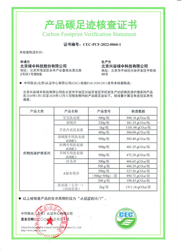 上一篇:北京興谷綠傘科技有限公司-CEC-PCF-2022-0060-2-織物洗滌護(hù)理系列
